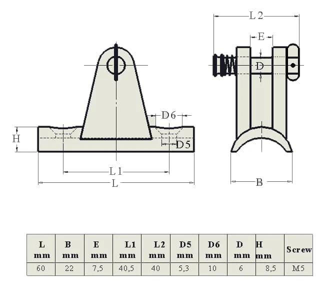 Dimension 60*22 for 22mm pipe; 57*20 for 25mm pipe
