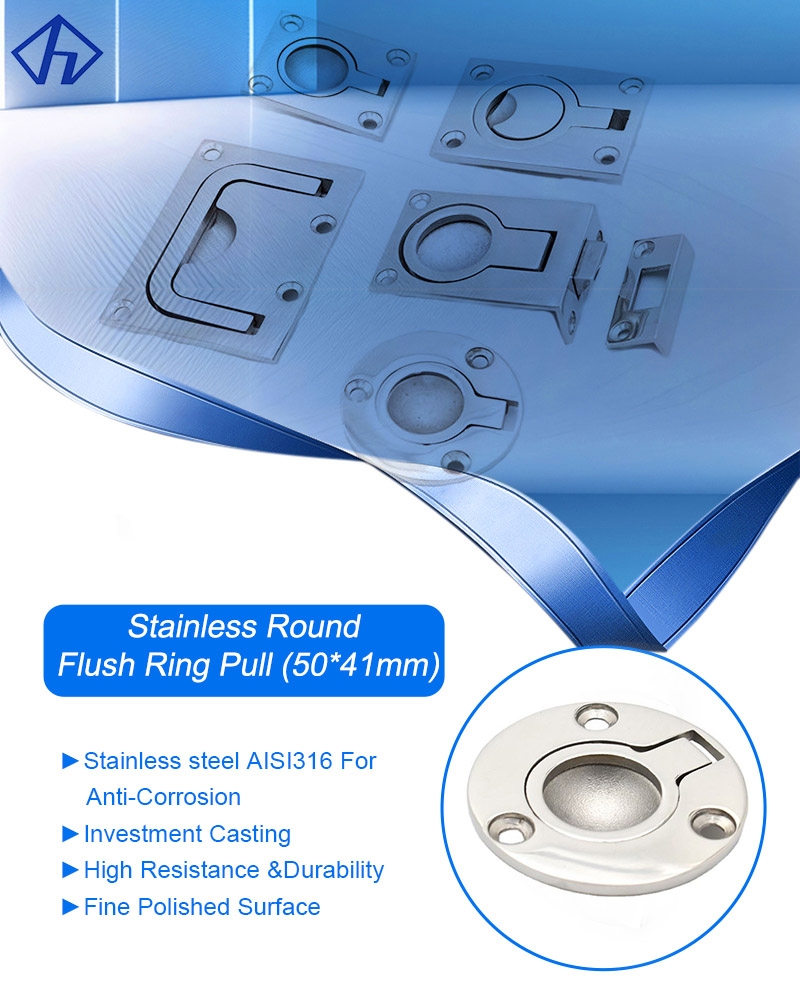 Marine grade flush ring pull with circle recessed ring handle for easy opening and lifting, suitable for powerboat and sailboat , easy to install, marine stainless steel AISI 316 to ensure maximum corrosion- resistance and lasting longevity in the harsh environments.
